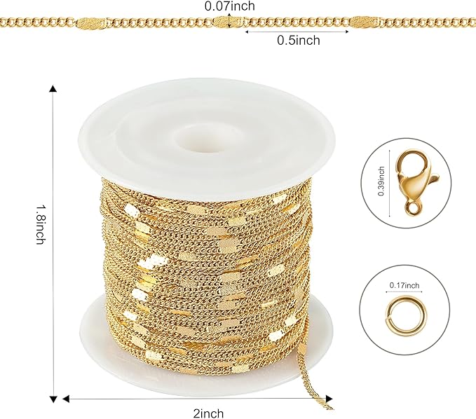 - [Premium Stainless Steel Chain Roll]: The gold chain for jewelry making is made of high-quality 304 stainless steel, which is shiny, not easy to rust and corrode, also strong enough to your DIY project making, and could be used for a long time.