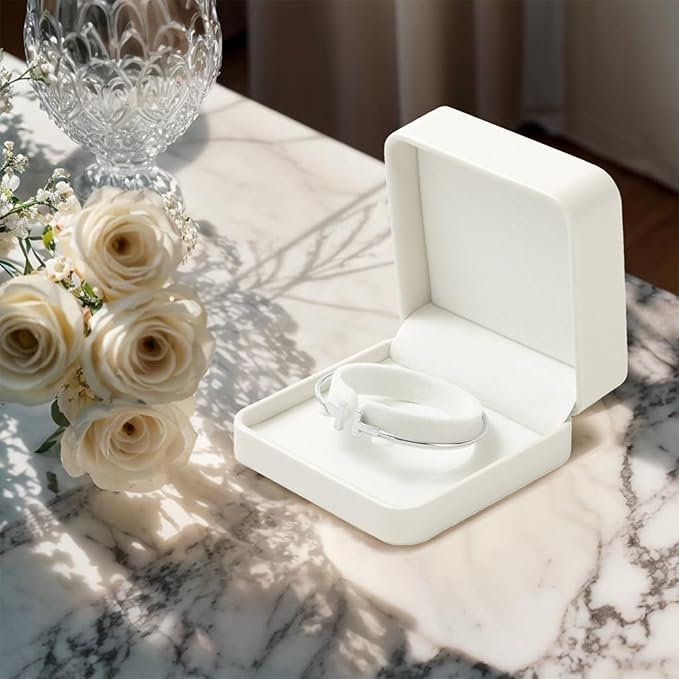 Leather Bracelet Bangle Gift Box Bangle Holder Velvet Interior Jewelry Gift Box Jewellery Storage Case for Wedding Birthday Mother's Day Gifts (White)