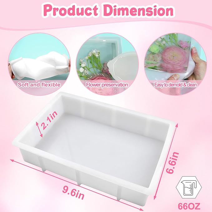 - 【Silicone Molds for Resin】The resin silicone molds are made of durable silicone by advanced techniques. With the flexible, smooth and reusable epoxy molds, soft and light, you can use, de-mold and clean them easily. Due to the mold is large and deep, we recommend to pour the resin in layer or divide your casting process into several times helps avoid resin overheat issue. If you want to demold more easier, you can use mold release spray ro mild soapy water