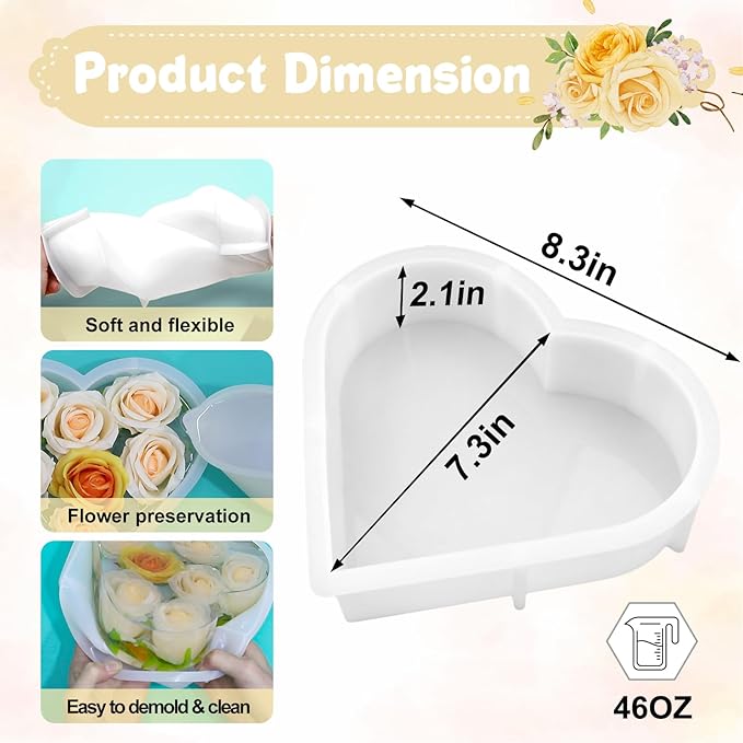 - 【Silicone Molds for Resin】The resin silicone molds are made of durable silicone by advanced techniques. With the flexible, smooth and reusable epoxy molds, soft and light, you can use, de-mold and clean them easily. Due to the mold is large and deep, we recommend to pour the resin in layer or divide your casting process into several times helps avoid resin overheat issue. If you want to demold more easier, you can use mold release spray ro mild soapy water