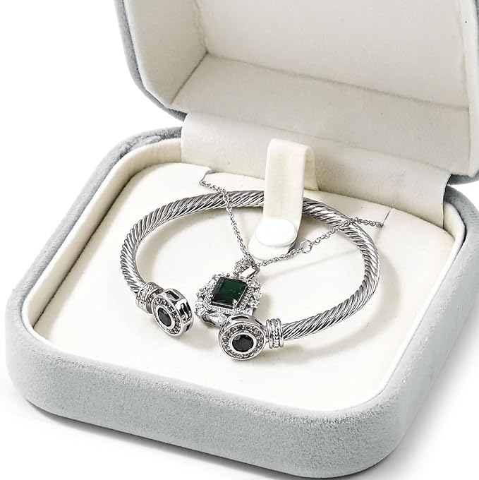 Velvet Bracelet Gift Box - Jewelry Holder With Velvet Interior for Bangles - Storage Box for Birthday, Wedding, Mother's Day, Valentine's Day (Grey)