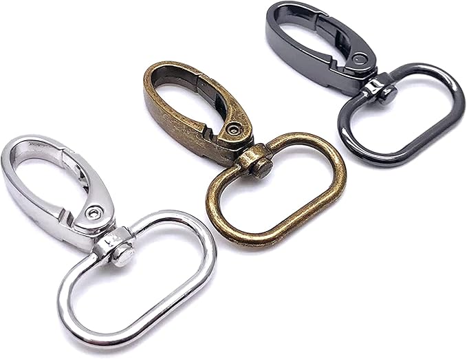 - 【1 INCH SWIVEL HOOKS FOR PURSE FLEXIBILITY】The push gate hook with a full 360 degree capable Swivel Push Gate Lobster Clasps for easy use and you can rotate it any direction. The gunmetal push gate swivel hook combined with oval ring or slide ring are quite useful for a yarn tail.