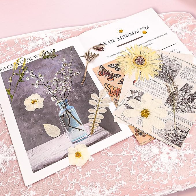 - Widely Used: You can use our mixed pressed flower stickers set for making handmade jewelry such as necklaces, earrings, etc., decorations for walls, paintings, nails, scrapbooking, journals, bookmarks, cell phone cases, coasters, keychains, etc., candles, soaps, make-up, and other DIY resin crafts, furniture, and carpentry, and you can also use it as a scrapbooking supply, use the sun-dried petals as a wall decoration for a family dining room table or as decorations for weddings and so on.