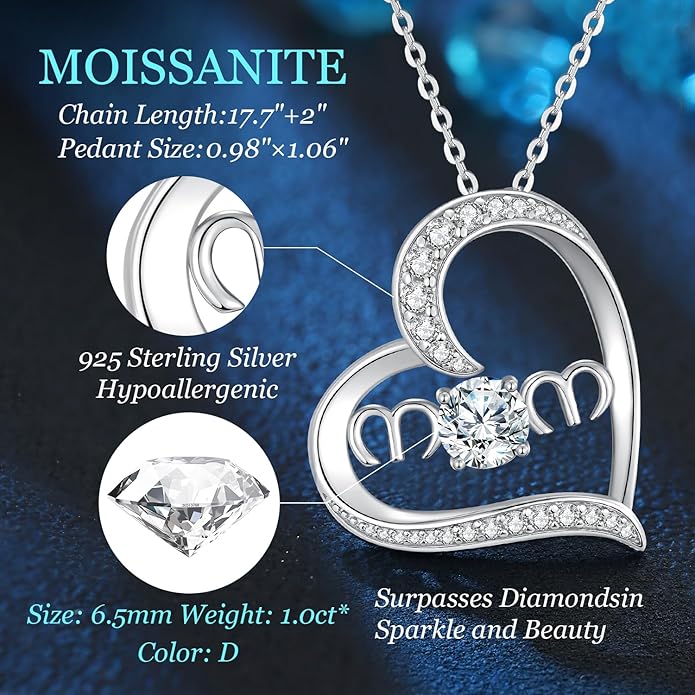 - Meaningful Gift for Mom: This heart-shaped moissanite pendant is engraved with “MOM”, making it a touching gift to honor the strength and love of mothers. Perfect for Mother’s Day, birthdays, Christmas, or as a sentimental surprise from daughter and son