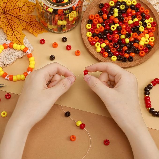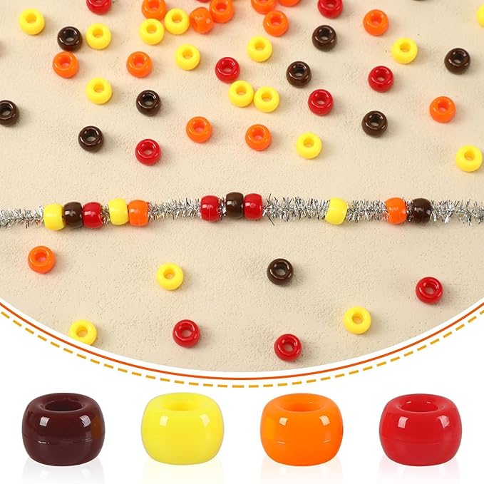 - Package Contents: There are a total of 1200 Fall Pony Beads in 4 colors, including yellow, orange, red, brown, which match the Thanksgiving theme. Sufficient quantity offer you multiple choices, and bright colors create a strong autumn atmosphere for you