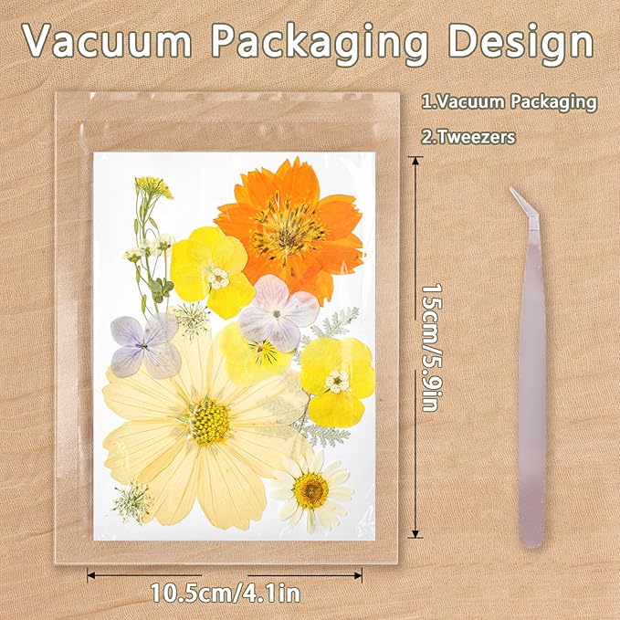 - Natural & Colorful: These resin accessories pressed flowers sets are made from fresh natural flowers and leaves, which will retain the shape, color and scent of the flowers in their natural state, and we use transparent vacuum packaging, which helps to keep the flowers dry and guarantees the safe transportation of pressed flowers.