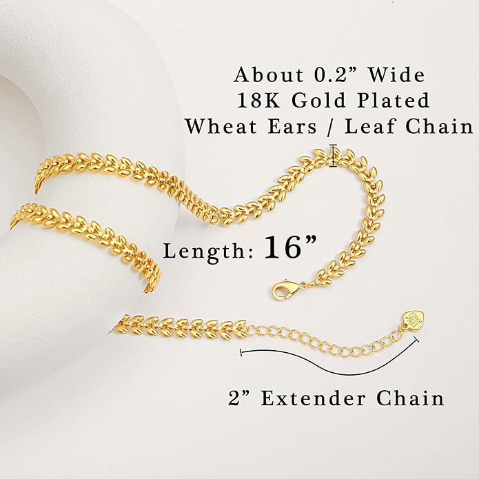 - Chunky Gold Chain Choker - Simple gold necklaces for women are plated in 18k gold material, lead-free and nickel-free. Super energetic botanical necklace design adds a subtle trendy style. This clavicle chain necklace features plump leaf sprouts or wheat ears, a puffy 3D feeling, so cute.