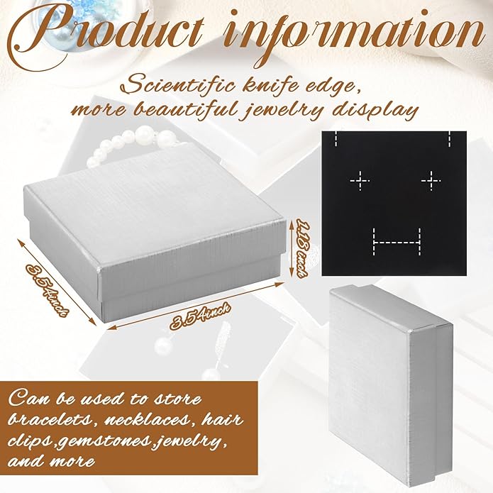 - Suitable Size: compact and convenient design each kraft box has a compact size of about 3.5 x 3.5 x 1.2 inches/ 9 x 9 x 3 cm, making them suitable for storing various types of jewelry pieces; The size is ideal for earrings, bracelets, necklaces, rings, small beads, crystals, coins, and other small collectibles; Additionally, the boxes come with a 0.39 inch thick sponge pad inside, providing additional protection to your delicate jewelry items