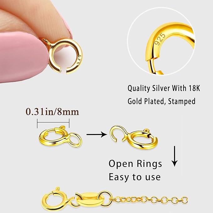 Spring Clasps Sterling Silver with Open Jump Rings Gold Necklace Clasps and Closures for Jewelry Making,Made in Italy