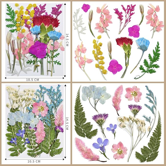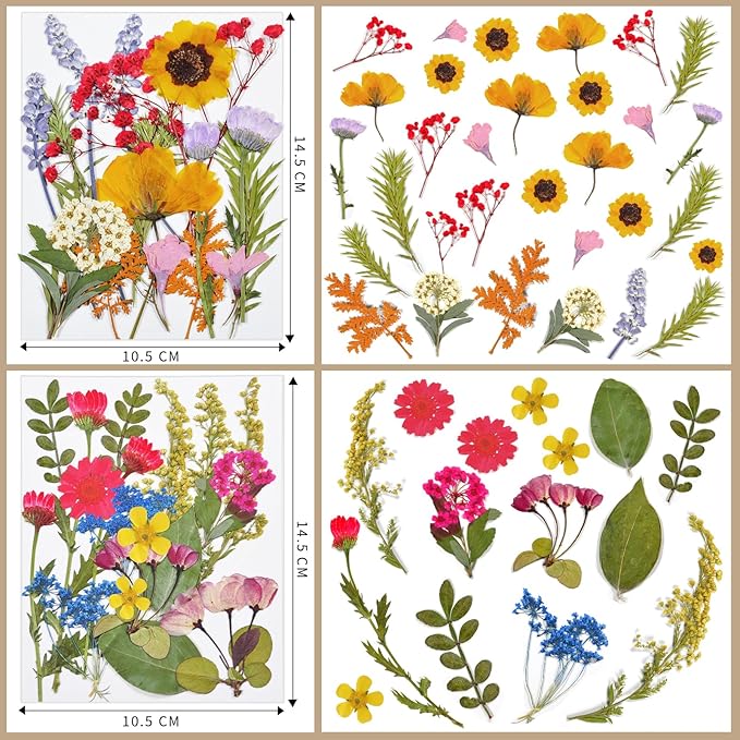 - 🌸【Natural Charm】: Every flower and leaf is made from natural flowers, using a process that preserves the beauty of the flowers. Vibrant colors are full of life and vitality, placing pressed flowers in your bedroom or living room will bring you a pleasant mood, perfect for use as DIY filler.