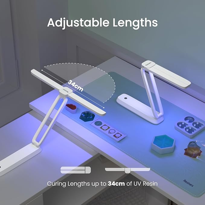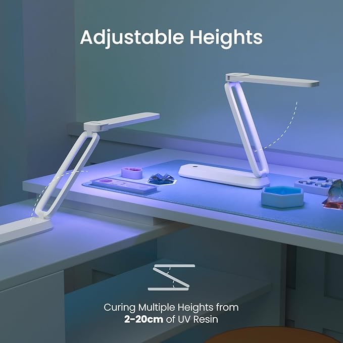 - ๐ ๐ข๐ญ ๐๐๐ซ๐ข๐จ๐ฎ๐ฌ ๐๐ข๐ณ๐๐ฌ ๐๐๐ฌ๐ข๐ง๐ฌ: This UV resin light features a dual-adjustable stand and lamp tube. With just a simple stretch and fold, you can effortlessly set the ultraviolet radiation range to meet your curing needs for UV glue within a desktop height of 20cm (7.87 inches) and a width of 34cm (13.39 inches), surpassing previous limitations