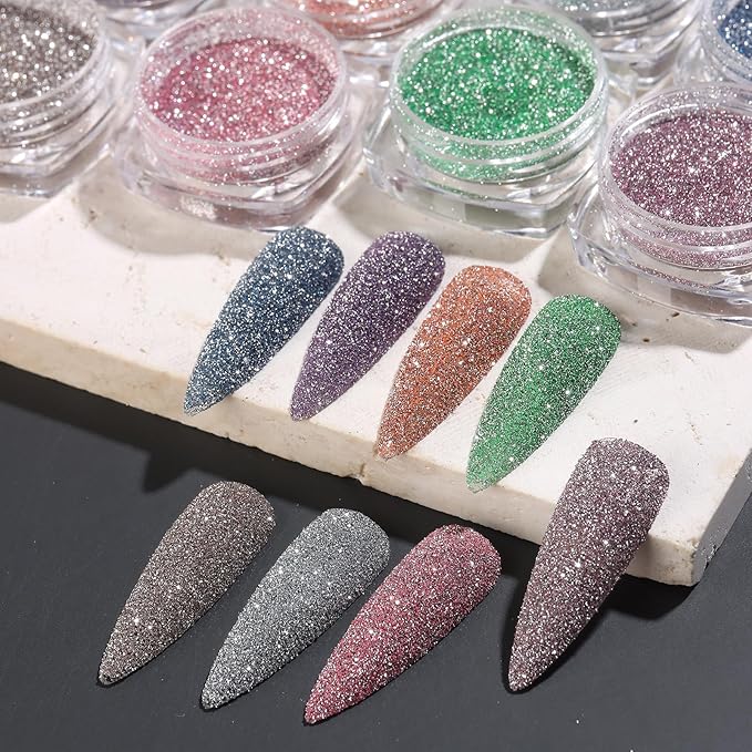 - 【Easy To Use】 You can use these diamond nail glitter as to do dip manicure or mix them into the nail polish or nail gel for self-made reflective glitter gel. Besides, you can apply the powder on no cure gel polish to get sugar coating effect.