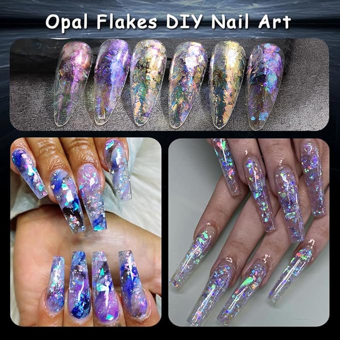 - 【Easy To Use】 First, apply base coat and cure via a UV LED lamp. Second, apply opal nail glitter flakes on your nails. At last, apply top coat and cure. This is very simple and suitable for professionals and beginners alike.