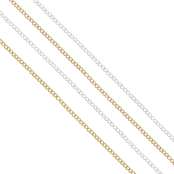 60 Feet Metal Iron Jewelry Chains 3mm Bulk Curb Necklace Chains for Jewelry Making (3mm Gold and Silver)