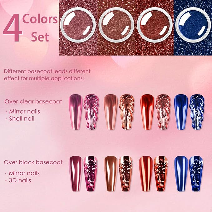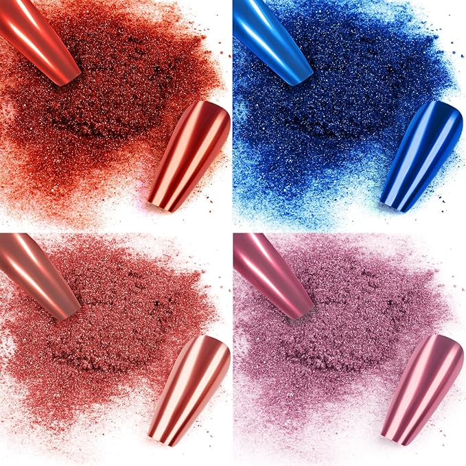 - Wide Usage: Allstarry pink red chrome nails powder has 4 colors(nail powder medium pink, red nail chrome, rose gold and purple chrome nail powder) which matches with valentines gel nail polish, purple nail polish, red nail polish, pink chrome nail polish, french manicure, 3D shell nails, meeting your needs for different works. The chrome powder for nails can be applied on UV gel nails, pink acrylic powder, natural nails or false red nails, nails pink. Also can be mixed into red gel nail polish and purple gel nail polish for its solvent resistance.