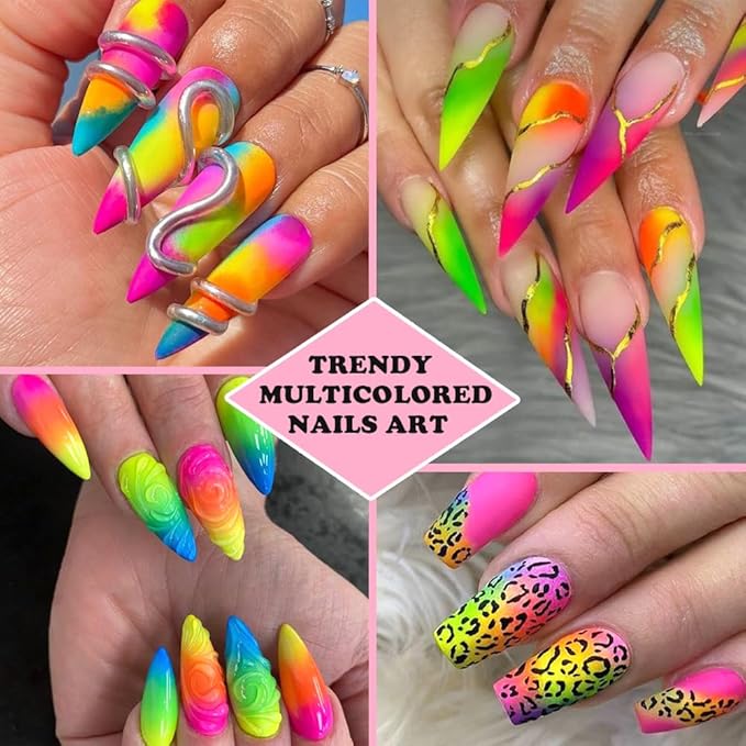 - 【How to use】 There are two methods to apply it. Method 1--Mix neon pigment powder with base coat, stir well and use nail brush to apply it on the nails,cured with UV/LED lamps. Method 2--Apply base coat, cured UV/LED lamps. Then apply nail powder with sponge sticks, or use the neon powder as dipping powder. At last, apply top coat and cured with UV/LED lamps.