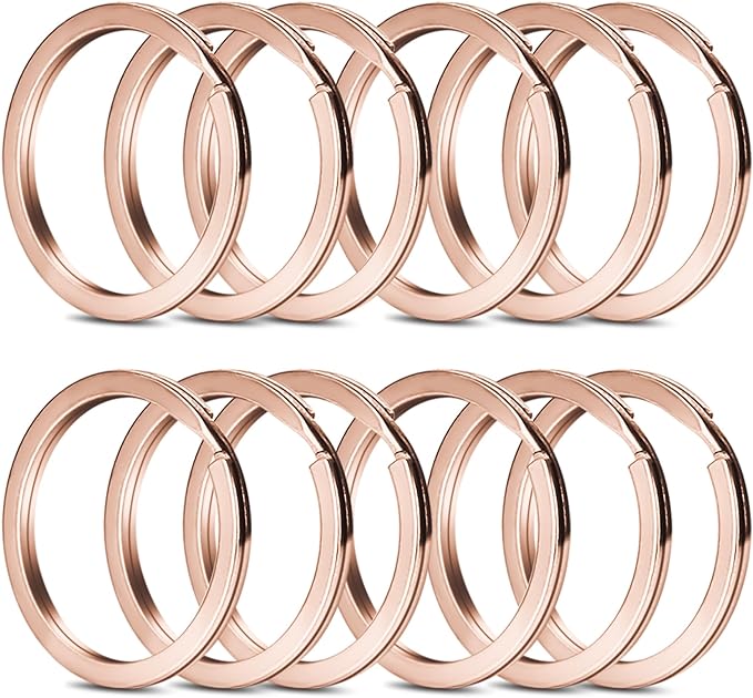 Gkeygo Key Rings, 12 pcs Stainless Steel Key Ring for Keychains, 1inch Flat Split Keychain Ring for Car Keys Dog Ring Tag Lanyards Home School Office DIY, Rose Gold