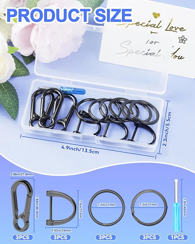 - Complete Kit for Versatile Use: This Keychain Rings Kit includes three keychain clips, three thin key rings, three thick key rings, three D-shaped key rings, and a mini screwdriver. Suitable for organizing key rings for car keys.