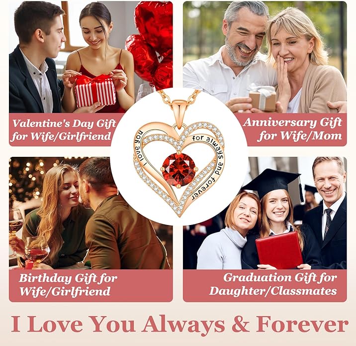 CDE Valentine's Day Gift Forever Love Heart Necklaces for Women, Wedding Anniversary, Birthday Mothers Christmas Day Gifts for Mom, Mother, Wife, S925 Silver Jewelry with Birthstone Pendant