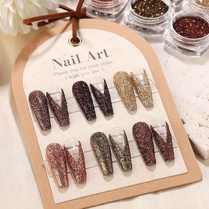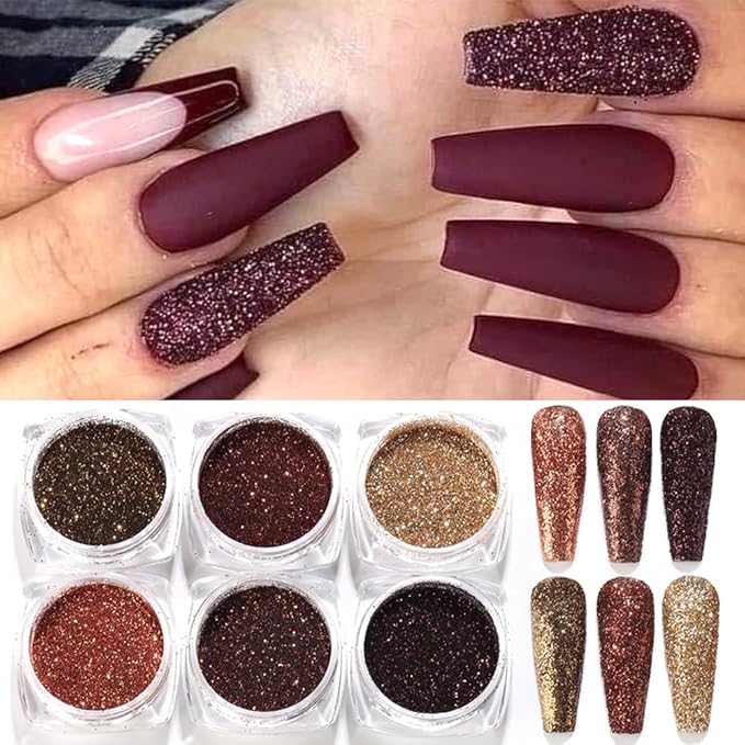 6 Colors Holographic Nail Art Glitter, Ultra Fine Metallic Shining Glitter Dust, Retro Champagne Golden Reflective Sugar Dipping Pigment for DIY Gel Polish Nail Art Decoration, Resin Craft
