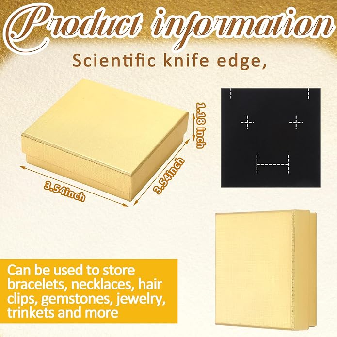 - Suitable Size: compact and convenient design each kraft box has a compact size of about 3.5 x 3.5 x 1.2 inches/ 9 x 9 x 3 cm, making them suitable for storing various types of jewelry pieces; The size is ideal for earrings, bracelets, necklaces, rings, small beads, crystals, coins, and other small collectibles; Additionally, the boxes come with a 0.39 inch thick sponge pad inside, providing additional protection to your delicate jewelry items