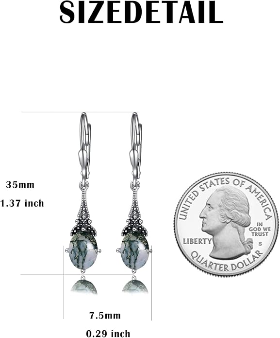 - ❤ 【SIZE INFO】Earrings Size: 1.37*0.29 inch (35*7.5mm), genuine oval moss agate size: 8*6 mm.