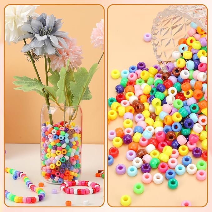 - Suitable Size: Our pony beads are 6 x 9 mm in size and hole diameter is 4 mm, which is easy to thread and suitable for key chains, bags and other decorations