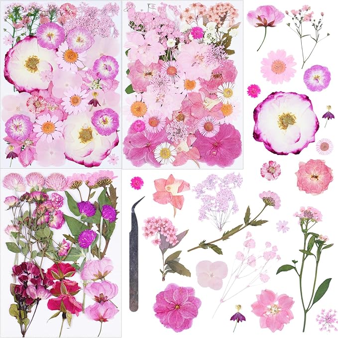 - Packaging Details:Consists of 91 pieces of natural pressed flowers plants and 1 tweezer, carefully crafted with real flowers from all seasons in a natural style, suitable as a gift for your family or craft enthusiast friends