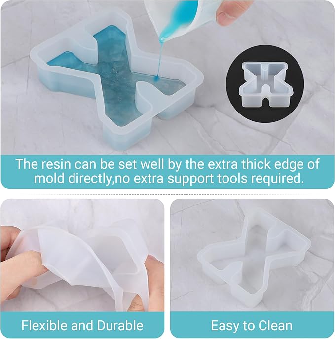 - 3D Capital Alphabet X: The epoxy casting resin mold is made of high quality silicone, flexible and reusable for DIY crafting your creative ideas. You can use with some dried flowers, sequins, shell, gold, silver foil, glitter or mica powder. You could make your own X resin creature, or combine X with other letters to form the words / sign you want!
