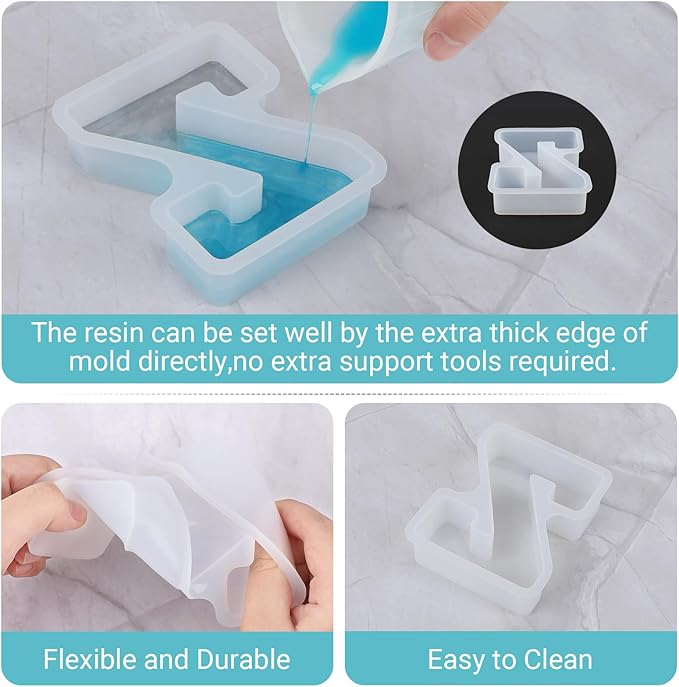 - Easy to Demold: Just twist the large letter mold and release your creation out of your casting mold after the resin is completely dry and cured. The easiest way to demold is to first peel from the edge slowly.