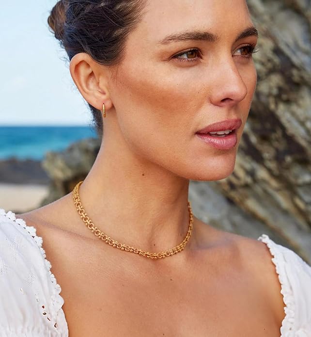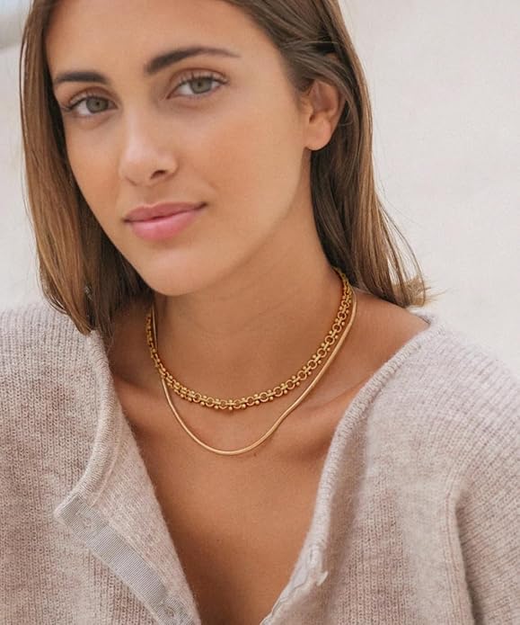 - Minimalist necklace for women is made of 18k gold plated metal. This gold choker necklace is suitable for wearing every day and layering it with other gold clavicle chain necklaces. You won't notice wearing a gold short necklace until they get you plenty of compliments. Lightweight and delicate, get the bead and circle link chain necklace now