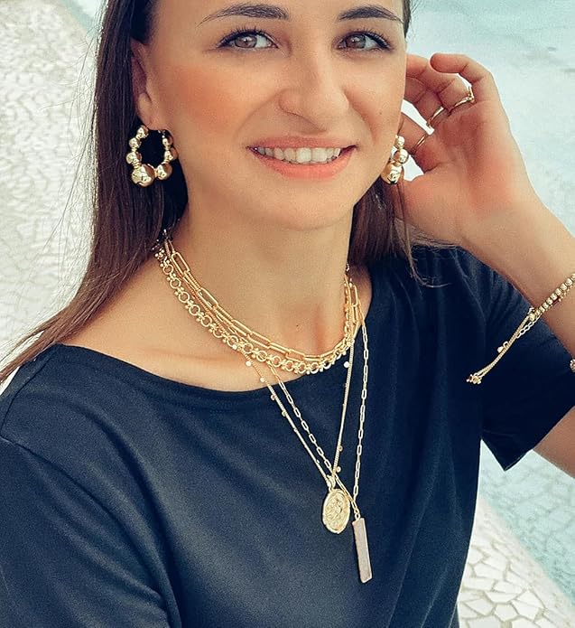 - The dainty necklace for women has a sleek and modern feel. The mixed simple geometric elements of round "O" links and "I" links are trending. These gold necklaces for women are also rich in dynamic elements owed to the dumbbell-like or barbell-like chain. Here is our lovely geometric necklace that will become your everyday go-to piece that you won’t want to take off