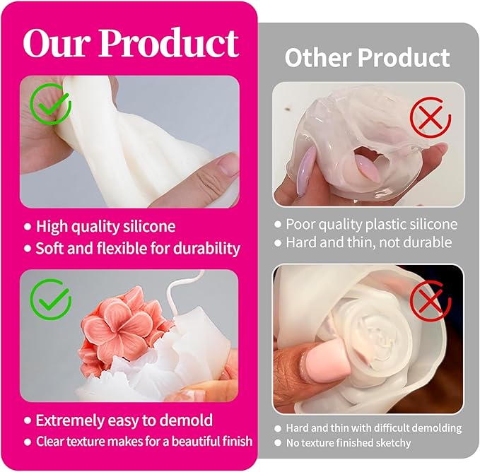 - 【Purpose of the Mold】Silicone molds can be used to make a variety of items such as candles, soaps, resin products, cakes, and desserts. They can also be applied to the production of handmade decorations and DIY projects.