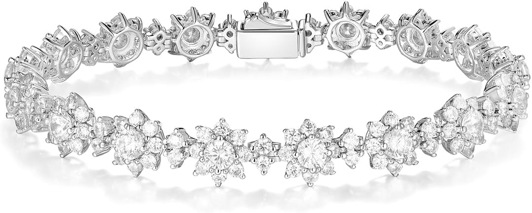 - 【Captivating Tennis Bracelet】Adorn your wrist with the enchanting hues of moissanites, this sleek flower moissanite tennis bracelet showcases a desirable clear white color and superb design. Excellent sparkle moissanite, total 8.25ct-10.45ct, showing off its brilliance from any angle, this bracelet is sure to impress you.