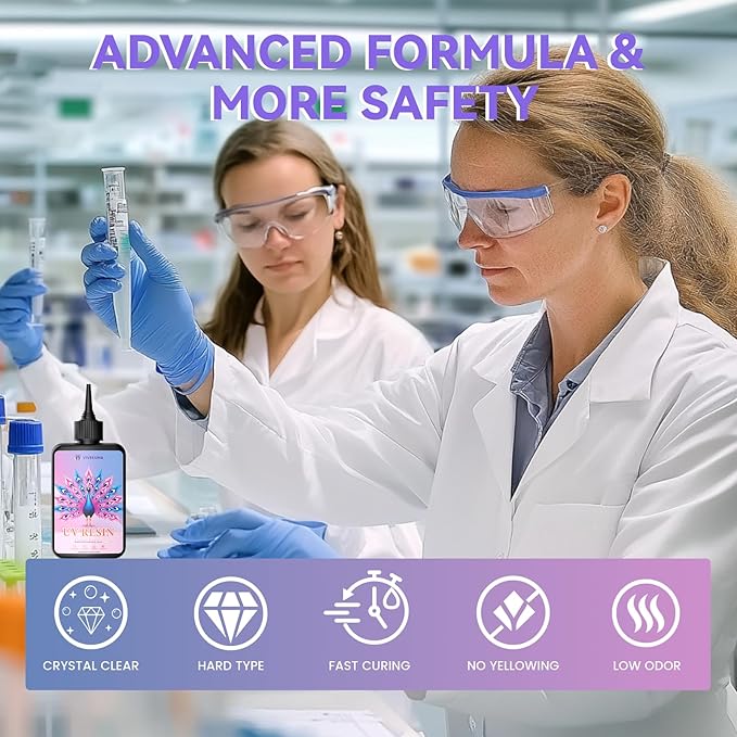 - Safe and Resist Yellowing: Vivresina UV resin is made of high quality safe and non-toxic material with self-leveling and self-degassing properties. After curing, it is completely odorless and crystal clear, anti-scratch, non-sticky; Adding more potent uv inhibitors, it is more resistant to yellowing, which can keep your crafts long-lasting and gorgeous