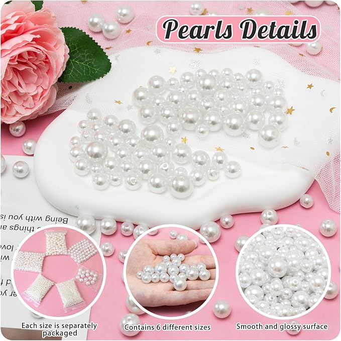 - Pearl Beads Value Set: This set includes 2505pcs white pearl beads with hole in six different sizes to meet all your creative needs. It’s the perfect choice for DIY crafts, jewelry making, home decor, and vase filler decorations