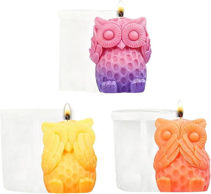WYAHYQ 3Pcs Owl Silicone Molds Candle Molds for Candle Making Animal Epoxy Resin Casting Molds