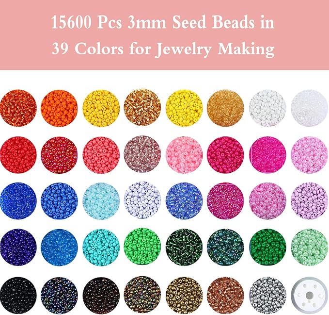THUTEP 15600 pcs 39 Color 3mm Seed Beads, Tiny Craft Beads for Bracelet Making, Bracelet Kits for DIY Jewelry Craft (Multicolor)
