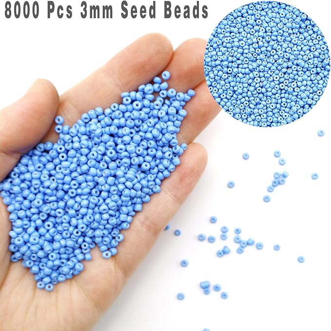 THUTEP 8000 pcs 3mm Seed Beads, Tiny Craft Beads for Bracelet Making, Bracelet Kits for DIY Jewelry Craft (Lightblue)