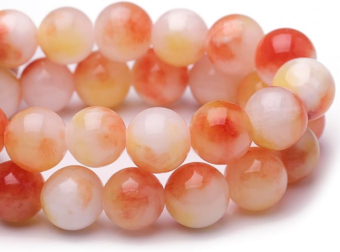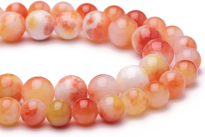 Natural Stone Beads for Jewelry Making,6mm Orange Jade Polished Smooth Round Gemstone Beads for Bracelet Necklace 15 Inch