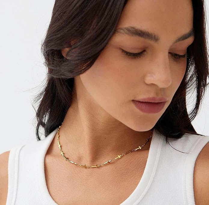 - Handmade Jewelry for Women: The gold cross station necklace is made by skilled workers for great quality. Aobei Pearl strive to be the most trustworthy, professional, and ethical jewelers. Please feel free to tell us if you have any questions about our gold link chain necklace chokers. We will do our best to provide you with an excellent shopping experience. Get the christian necklace for women now