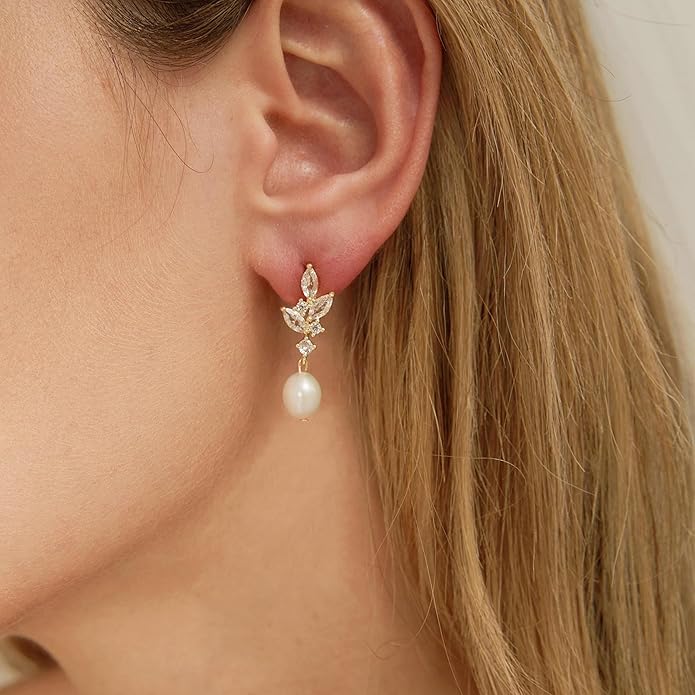 - Elegant design: lovely leaf zircon and pearl earrings in one,gold plated stud earrings make the ears light and comfortable; White earrings look shiny but not heavy, making them suitable for everyday wear and special occasions