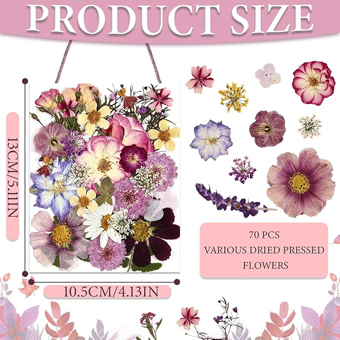 - Natural and real: Colorful dried and pressed flowers are in different varieties, which are well made by real flowers in right seasons, natural in style and elegant in appearance, which are nice supplies for various DIY crafts work