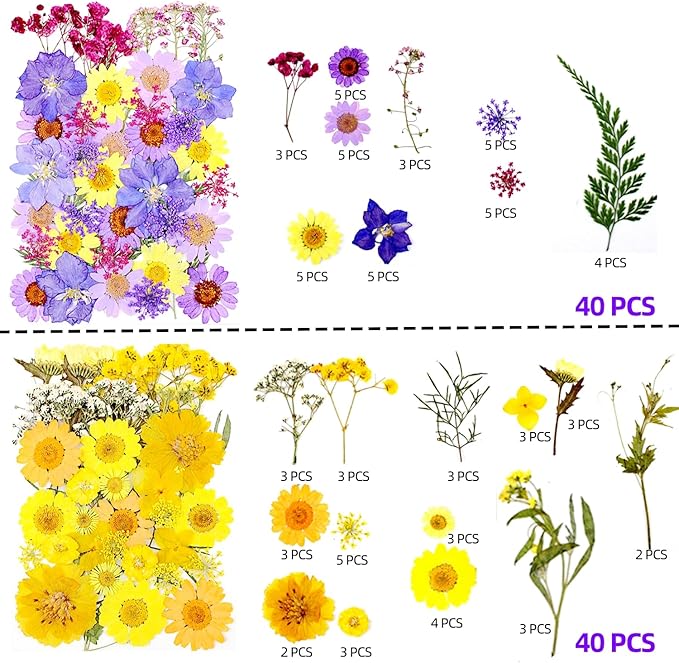 - Perfect Gift for Craft Lovers: This dried flowers for resin kit makes a thoughtful and creative gift for DIY enthusiasts, crafters, and art lovers. It's also perfect for creating personalized gifts, adding a beautiful, natural touch to your heartfelt messages, such as add the pressed dry flowers in a gift cards.