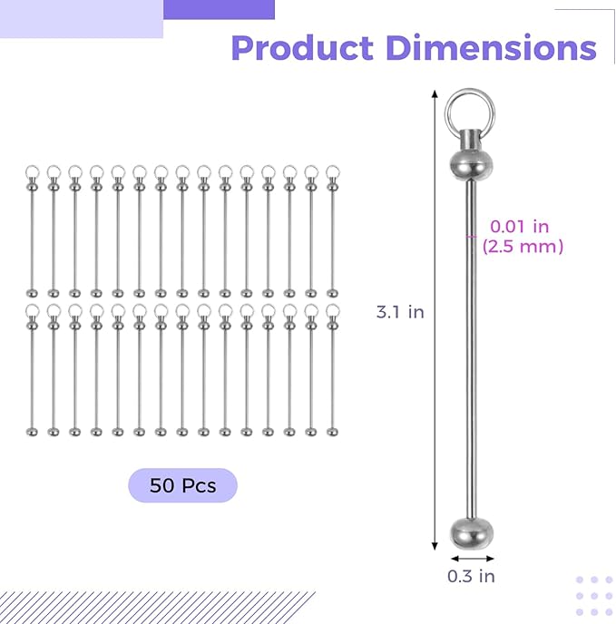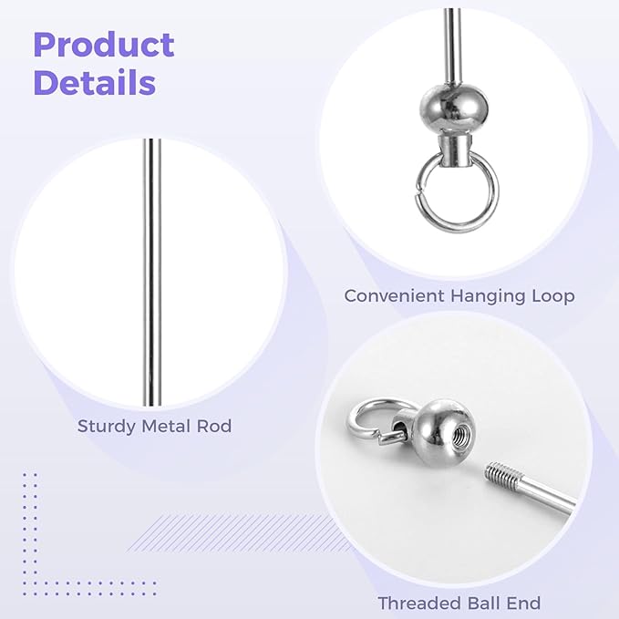- Easy Attachment: Comes with a hanging loop on one side and screw-thread ball end on the other; quickly attach charms, chains, or clasps and twist on the ball to lock everything in place—tool-free