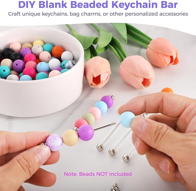 50 PCS Blank Beaded Keychain Bars, Metal Beading Sticks with Loop, Keychain Making Supplies for DIY Crafts, Bag Charms, Beadwork Projects, Jewelry or Custom Accessories