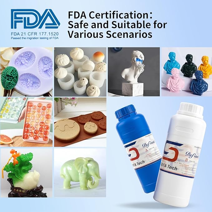 - Versatile and Food Safe - Certified food-grade platinum silicone makes it suitable for edible applications (chocolate, candy, ice), as well as epoxy resin, soap, wax, candles, and DIY modeling. A true all-in-one mold kit.