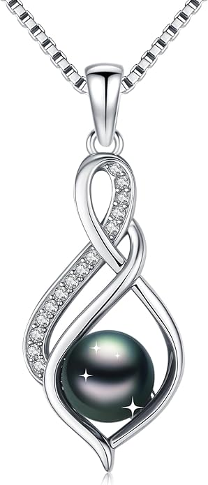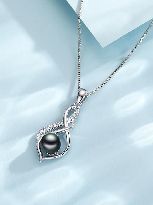 - MATERIAL SELECT: This black pearl necklace is made of 18K White Gold Plated 925 sterling silver. Electroplating process and manual fine grinding, not easy oxidize or deform. Select 7-8mm size AAAA Quality Tahitian Black Pearl as the 18K White Gold jewelry for women protagonist. Matching a 18''+2'' box chain
