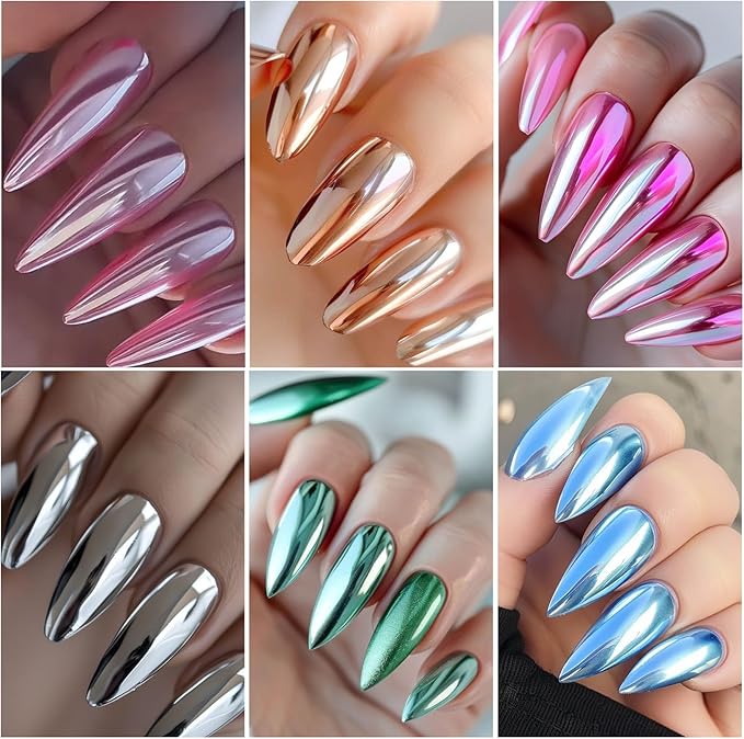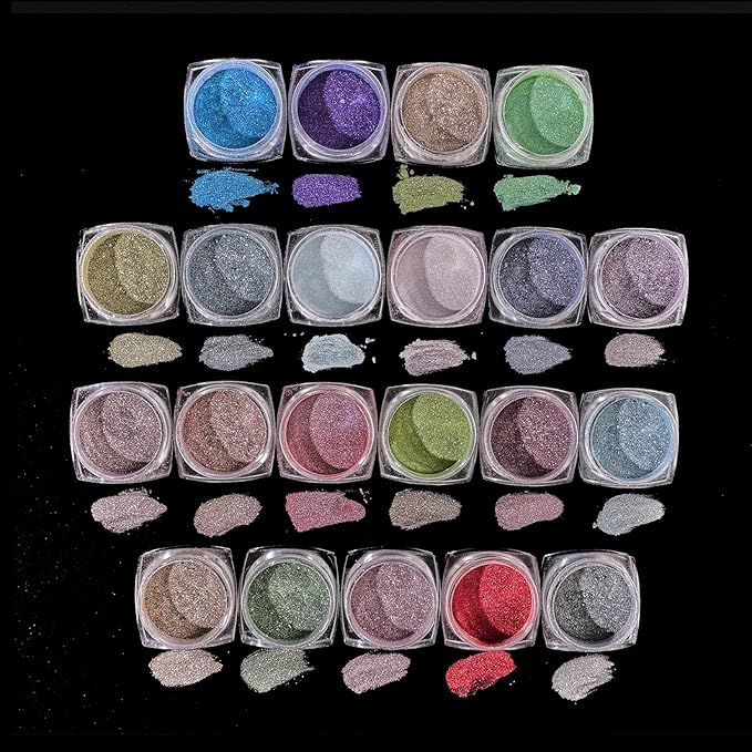 - Wide Application:Chrome Nail Powder Set has 21 colors of chrome nail glitter that can be used on UV gel nails, acrylic nails, natural nails or fake nails. It can also be used with other nail decorations, such as nail stickers, nail glue, sealing and then applying magic mirror powder to add layers and shine.