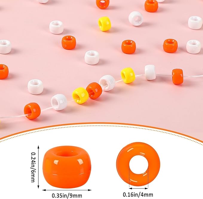 - Suitable Size: The size of each Thanksgiving pony beads is 6×9 mm /0.24×0.35 inch, and the diameter of the hole is 4 mm /0.16 inch. Pony beads fall colors are easy to thread and connect, and can be used with the pipe cleaner to create many Halloween-style shapes, such as corn candy, pumpkin, garland and so on